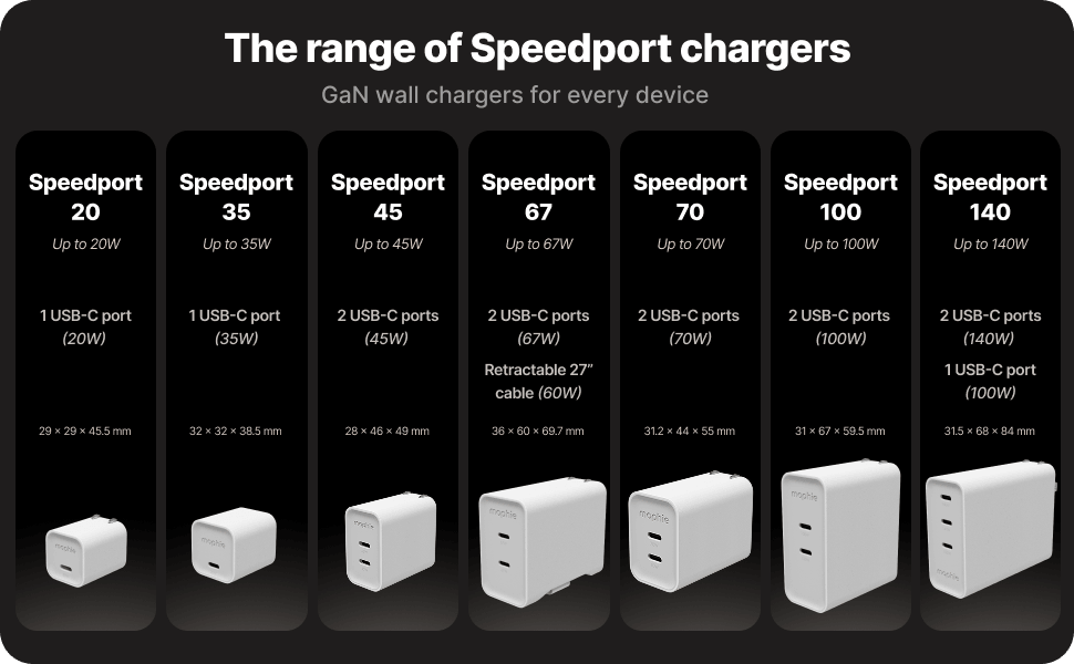 Charge faster and smarter with the Speedport 35W Wall Charger. Its USB-C port delivers up to 35W of fast-charging power, so you spend less time waiting and more time doing. Powered by advanced GaN technology, Speedport runs cooler and charges quicker—all in a compact design that fits anywhere.