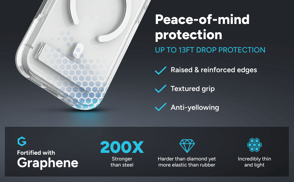 Drop Resistant up to 13ft│4m: Your case may be clear as crystal but it’s strong like a diamond—protecting your phone from drops as high as 13 feet up.1
