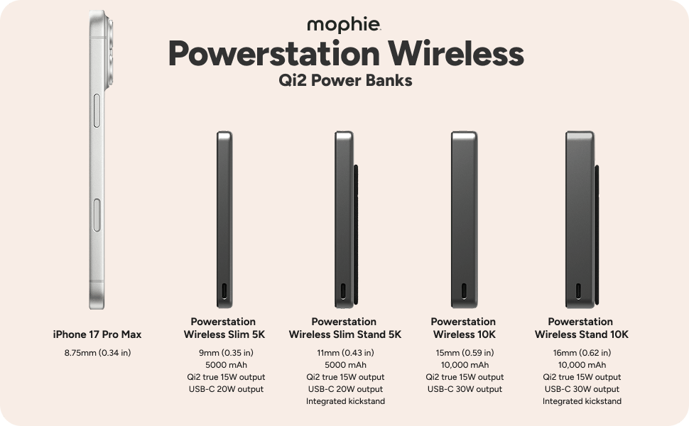Stay powered throughout your day with the ultra-slim Powerstation Wireless Slim. With a 5,000mAh internal battery, Qi2-certified wireless charging, and fast USB-C PD output, this compact power bank delivers reliable performance in a sleek, sustainable design. It’s airline-approved and backed by a 2-year warranty for peace of mind wherever you go. Also available without a stand.