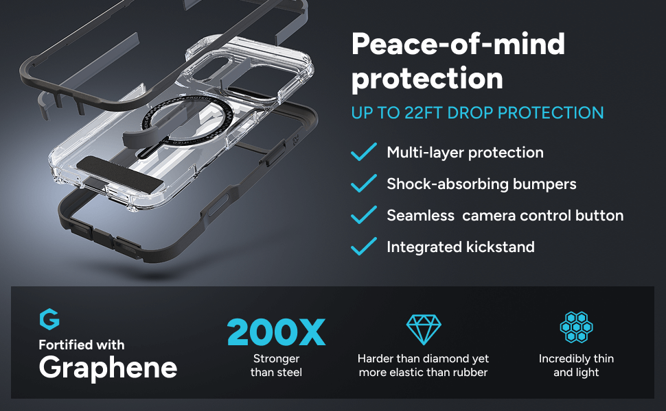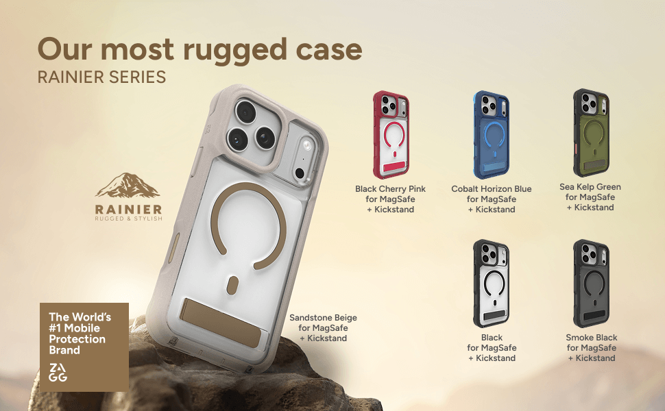 Rainier delivers rugged protection and hands-free convenience with eco-conscious design. With graphene strength, reinforced bumpers, and MagSafe compatibility, it’s built for adventure and everyday durability.